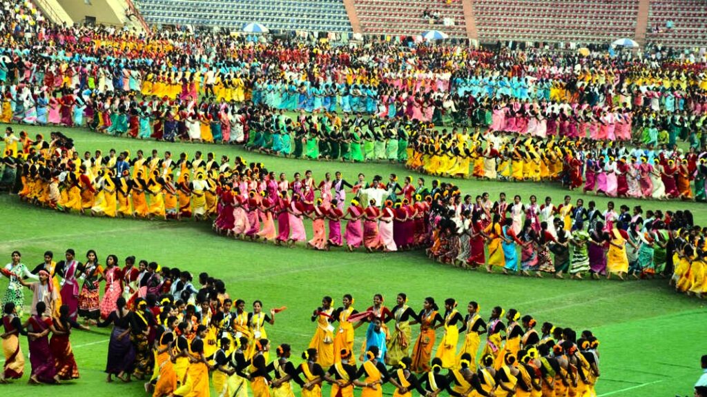অসমৰ গ্ৰাম্য কৃষি জনগোষ্ঠীৰ পৰা উৎপত্তি হোৱা এই নৃত্যৰ ৰক্ষক বডো আৰু অন্যান্য খিলঞ্জীয়া গোষ্ঠীৰ উদযাপন কৰা এই উৎসৱত শতাধিক লোকে অংশগ্ৰহণ কৰে। এই অনুষ্ঠানত ৰাজ্যৰ বিভিন্ন প্ৰান্তক প্ৰতিনিধিত্ব কৰা ৫০০ৰো অধিক নৃত্যশিল্পীয়ে সকলোৱে পৰম্পৰাগত সাজ-পোছাক পৰিধান কৰি ঢোল আৰু হুছৰি বাদ্যযন্ত্ৰৰ তালত সজীৱ আৰু প্ৰকাশভংগীমূলক নৃত্যৰ খোজ প্ৰদৰ্শন কৰে। সাহসী ৰং আৰু জটিল এম্ব্ৰয়ডাৰীৰ সুন্দৰ সংমিশ্ৰণেৰে অসমৰ সাংস্কৃতিক বৈচিত্ৰ্যক উজ্জ্বল কৰি তুলিছিল, প্ৰতিটো দলে নিজৰ অনন্য ধাৰাক মঞ্চলৈ আনিছিল।